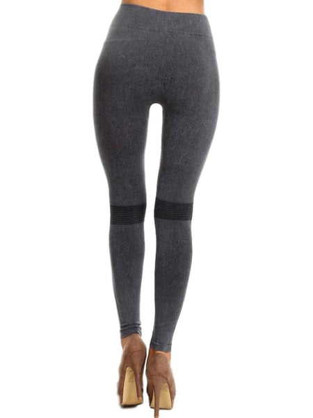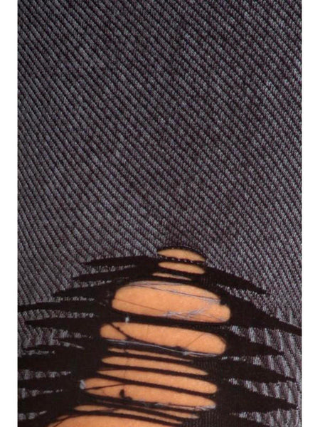 Casual yet very stylish! Dress them up by slipping on your favorite pair of black pumps. Featuring elastic waist, stretchy fabric, distressed denim print, and finished with a curvy tight fit. Long, skinny leg design Distress Detailing Comfortable Elastic Waistband Denim Print Pull-on styling Cotton/Polyester Machine Wash Warm with similar colors using Gentle Cycle.