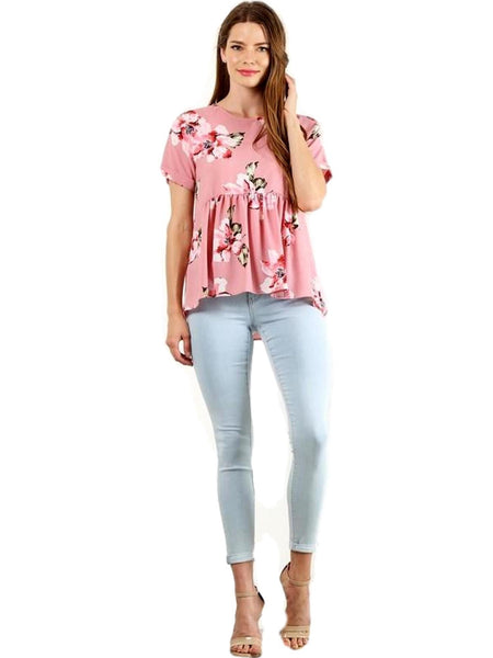 Floral Babydoll tops with lace up back Made in USA 100% Polyester