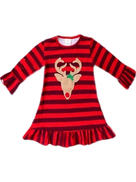 Girls Reindeer Ruffle Dress Fabric 97% Cotton 3% Spandex