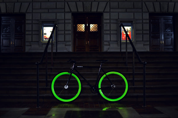 This is a demonstration store. You can purchase products like this from Pure Fix CyclesWith a black frame and green wheels that shine into the night, you'll look as good as glow! Get ready to take your night riding to a whole new level. After months of experimentation, we've perfected the GLOW, our newest line. The name says it all, it actually glows. The paint is solar-activated, so just give your bike an hour of daytime sun for an hour plus of night-time fun. Whether you're a night owl, a raver, or just want to trip out your friends, this is the bike for you.