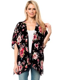 Half Sleeves Floral Print Kimono Style Cardigan 100% RAYON