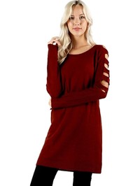 Ladder Long Sleeve Tunic Sweater, Dark Rust