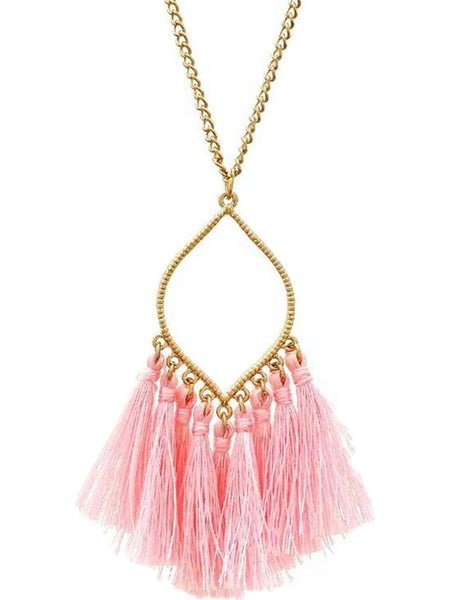 Marquise pendant Thread Tassel NeckLace, Hot Pink