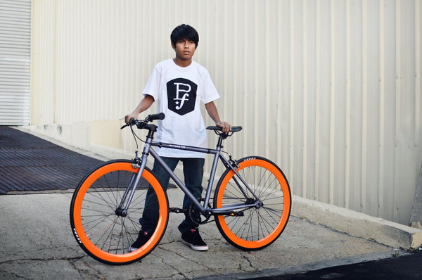 This is a demonstration store. You can purchase products like this from Pure Fix CyclesThis ain't your daddy's bicycle. Matte grey with orange wheels, people will call you Big Papa on this swanky set of wheels.