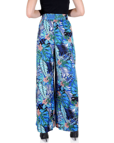 Miss Innocent leafy patterned palazzo with blue accent is a beautiful product that can be worn with a black spaghetti. You can wear it with a summer shrug or a scarf with flip flops. The poly Ggt material with poly knit lining gives it a flowy look.