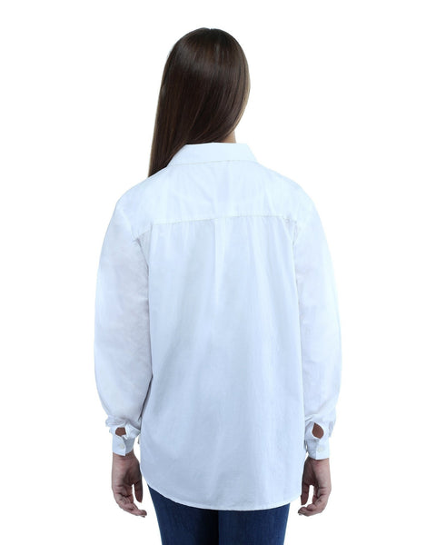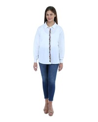 Crisp, simple and elegant is what makes this white color shirt for women a must have in your wardrobe this season. Made with high quality cotton fabric, this shirt by Miss Innocent is super comfortable to wear. Featuring long sleeves and beautiful embroidery at the placket, this shirt shall surely amp up your style.