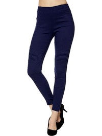 Stretch Moto Leggings Pants with Zipper Detail on Bottom. A pair of woven super stretch twill skinny pull on pants featuring a moto construction. Wear these with a sexy pair of heels for a classy going out look, or an oversized off-the-shoulder top for a casual day ensemble. Perfect for the fashionistas! 60% Cotton, 35% Nylon, 5% Spandex.