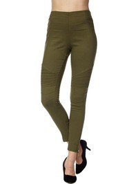 Stretch Moto Leggings Pants with Zipper Detail on Bottom. A pair of woven super stretch twill skinny pull on pants featuring a moto construction. Wear these with a sexy pair of heels for a classy going out look, or an oversized off-the-shoulder top for a casual day ensemble. Perfect for the fashionistas! 60% Cotton, 35% Nylon, 5% Spandex.