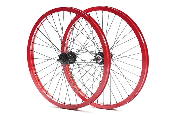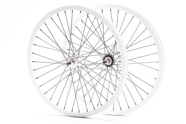 This is a demonstration store. You can purchase products like this from Pure Fix CyclesBuilt to work on everything from mountain bikes to our FGFS bikes, Pure Fix 26" wheelsets feature a triple-walled aluminum construct. These wheels include name-brand and laser-etched, sealed, high flange hubs. Our rear wheels include flip-flop hubs with a pre-attached 16T fixed cog along with a 16T wheel cog for single-speed riding. Front and rear wheels feature 36 spokes each and all wheelsets include nylon rim-strips to protect against sharp edges and prevent tube puncture. We recommend using any style of 26" tire (tires and tubes not included). List of Specs: